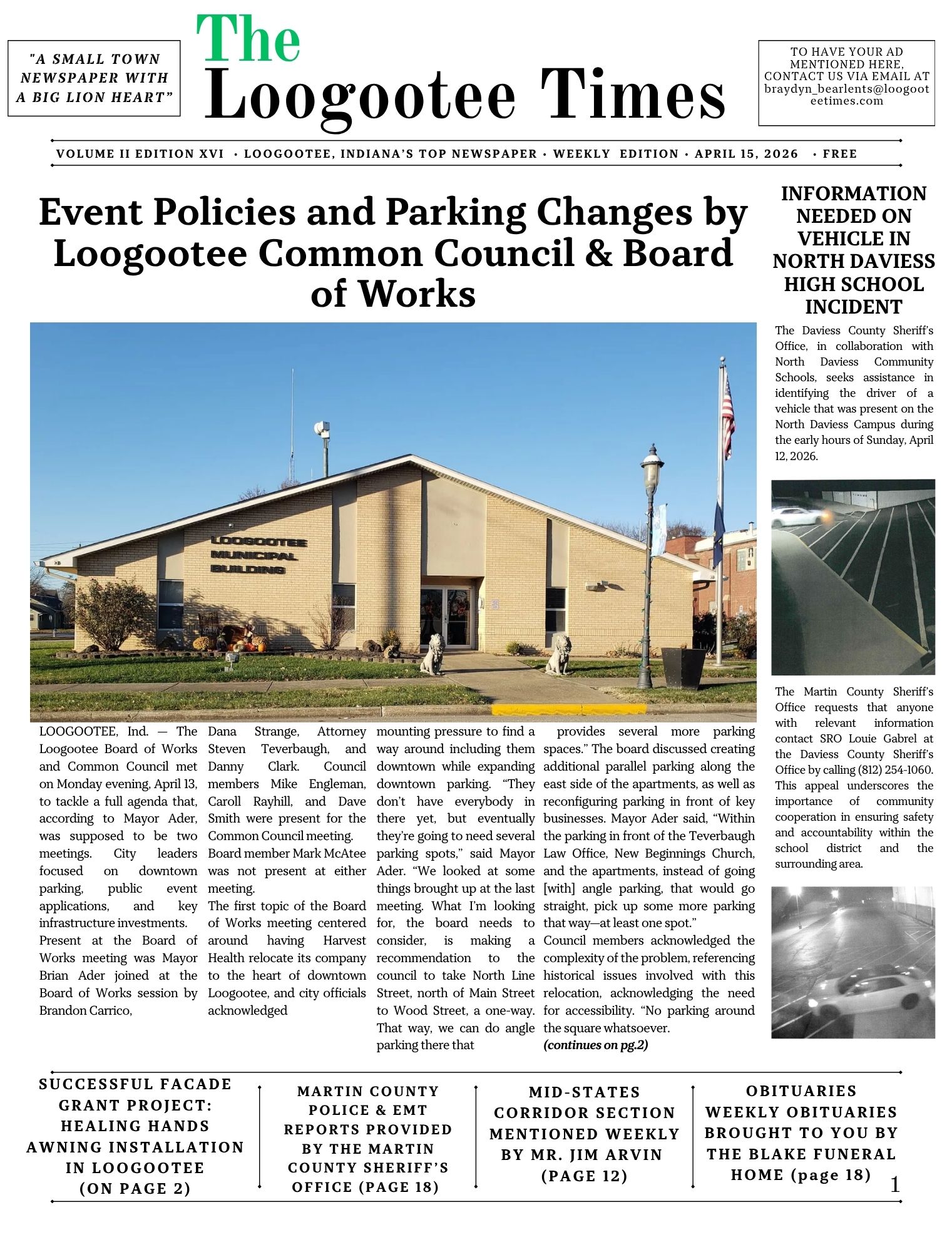 Event Policies and Parking Changes by Loogootee Common Council & Board of Works